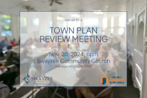 Please join us for a Town Plan Review Meeting at the Swayzee Community Church on Wednesday, November 20, 2024 at 6pm to provide your feedback on the draft of the town plan!